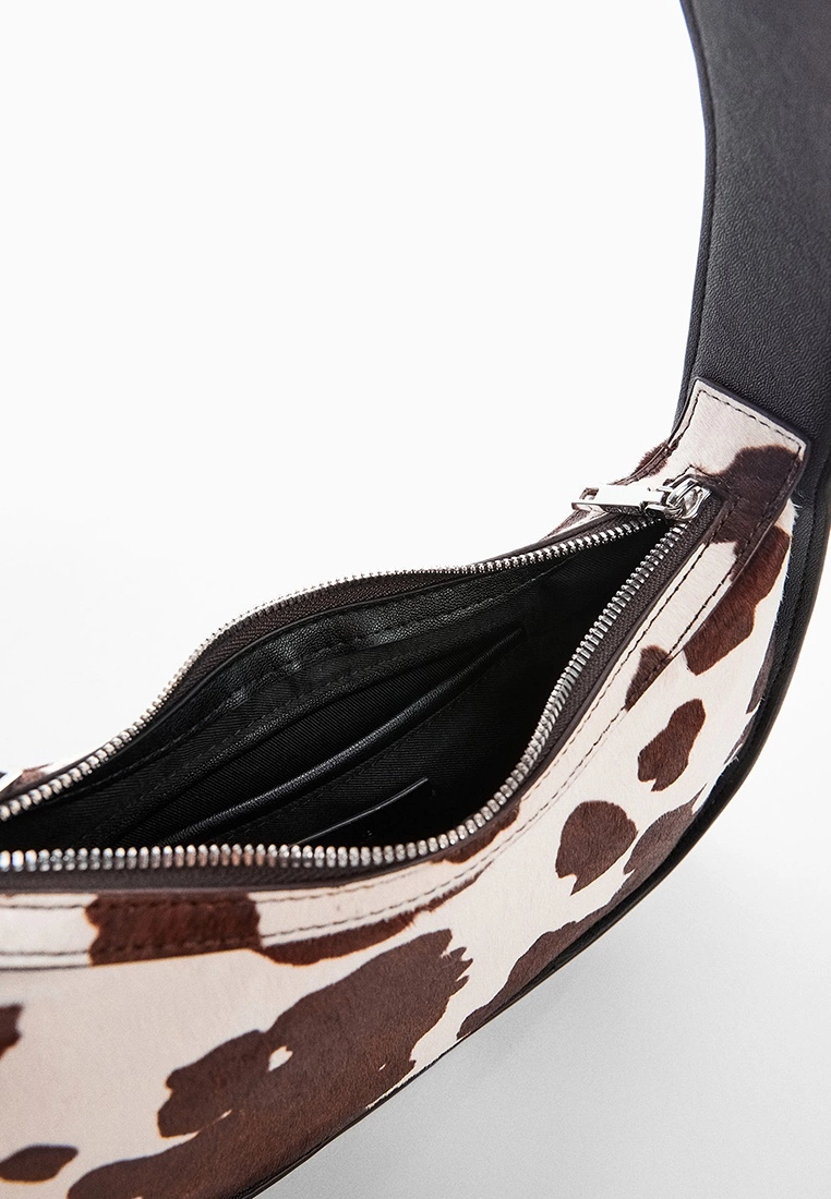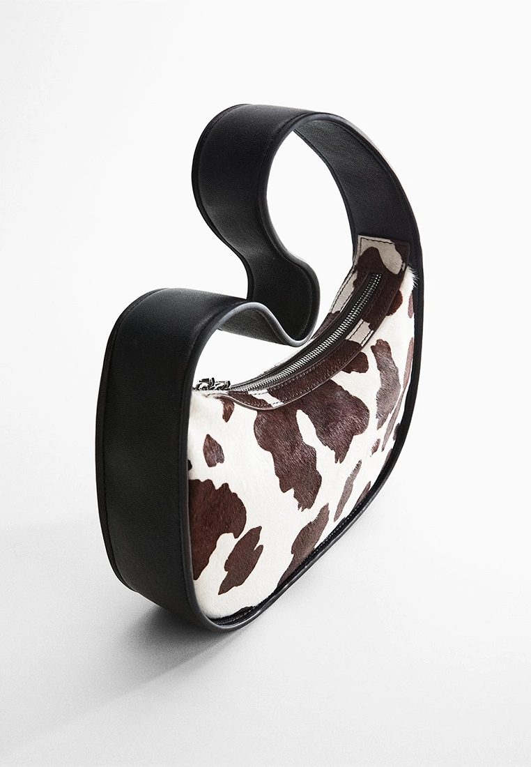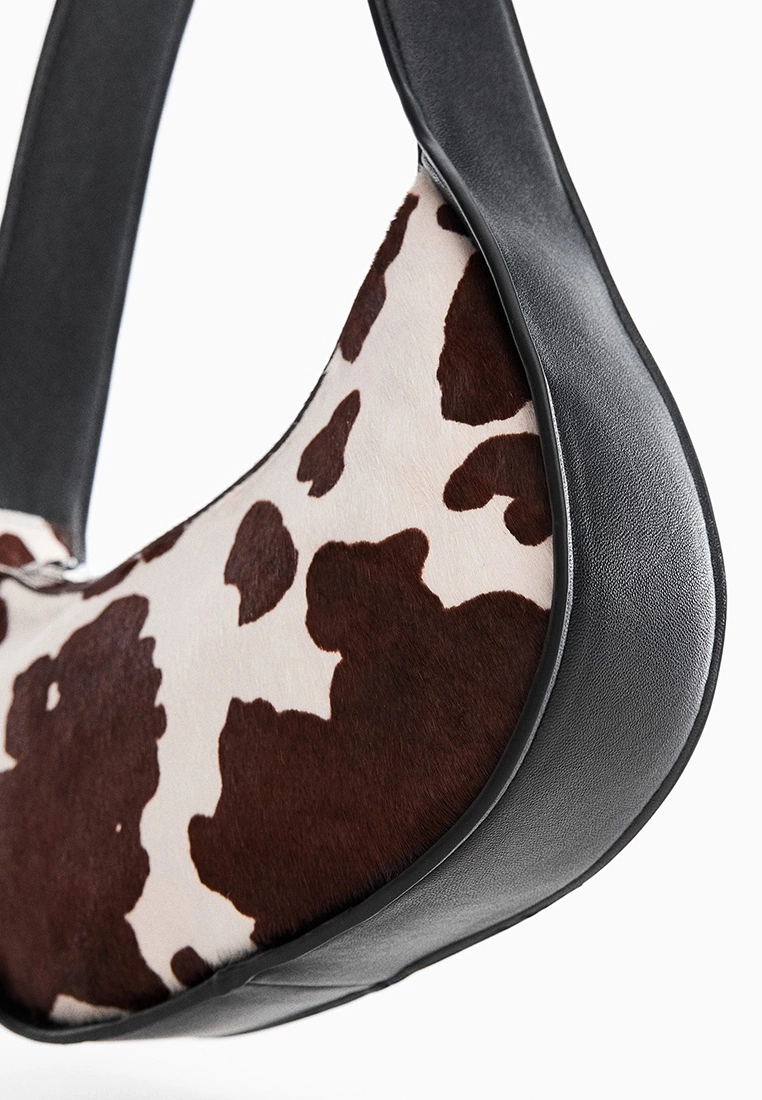 – Contrast trim cow print handbag