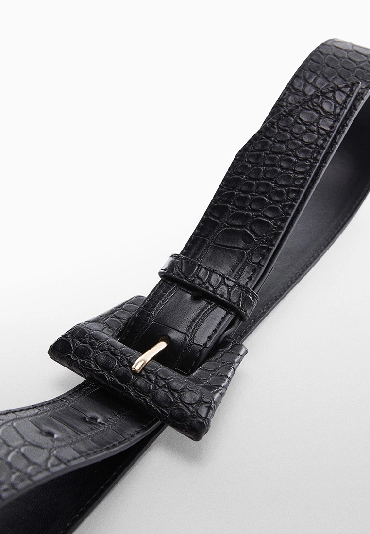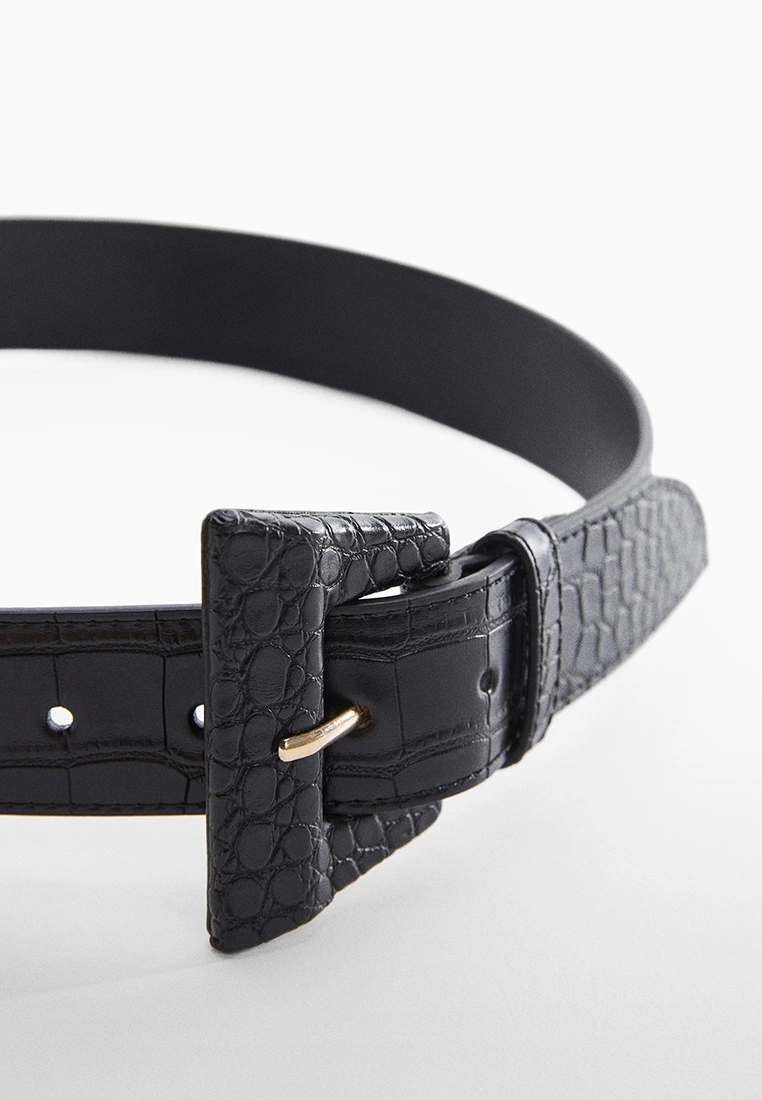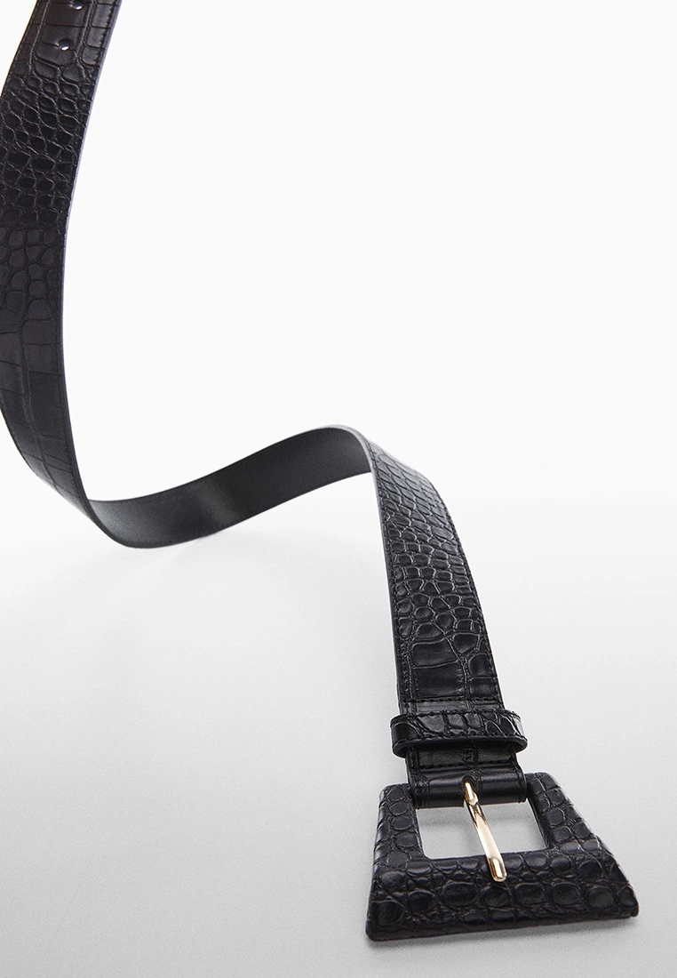 – Solid shade croc effect belt with geometric buckle