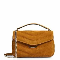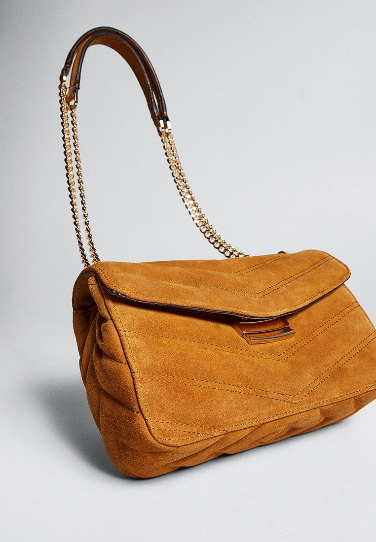 – Solid tone suede bag with chevron stitching