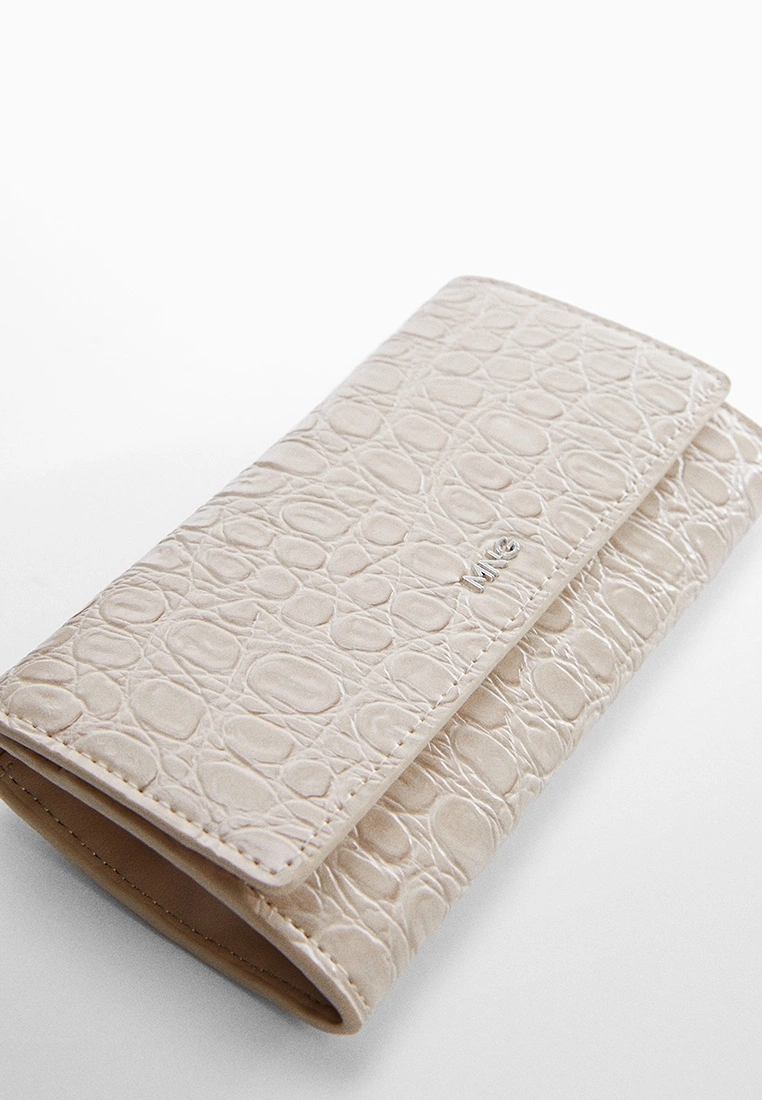 – Solid tone embossed faux leather long wallet