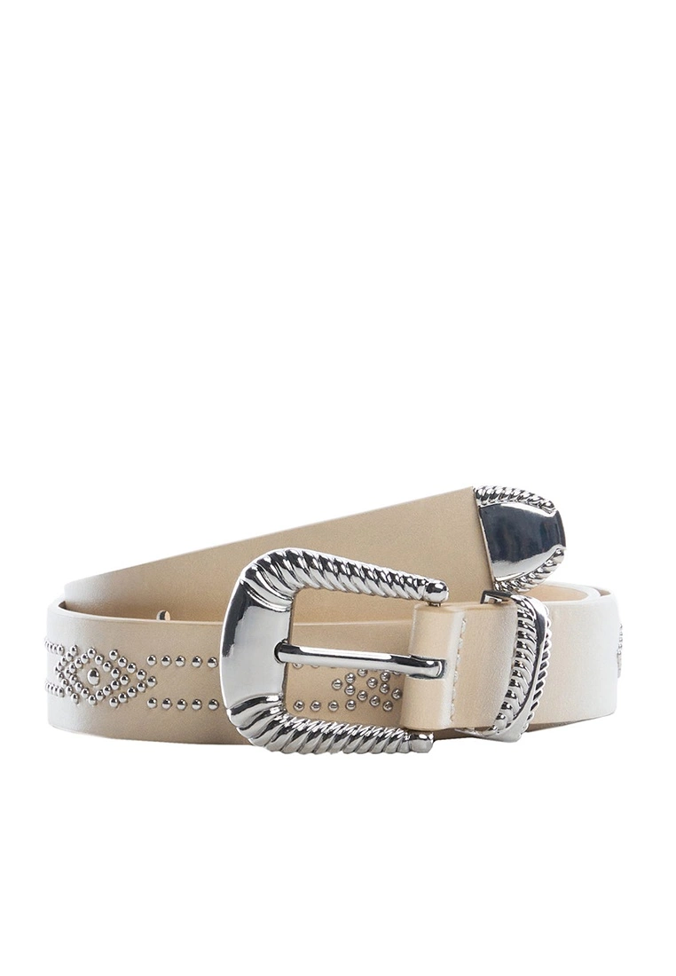 – Faux leather belt with decorative metal stud