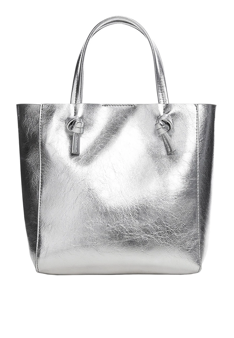 – Metallic faux leather tote bag